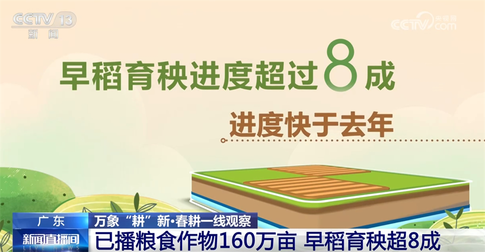 目前截至,栽到田达160万亩广东粮食作物播种移,度进步8成早稻育秧进,于客岁进度速。耕亨通进作为了保护春,万亩绿肥作物扫数压青还田广东将冬闲期种植的45,地地力晋升耕。