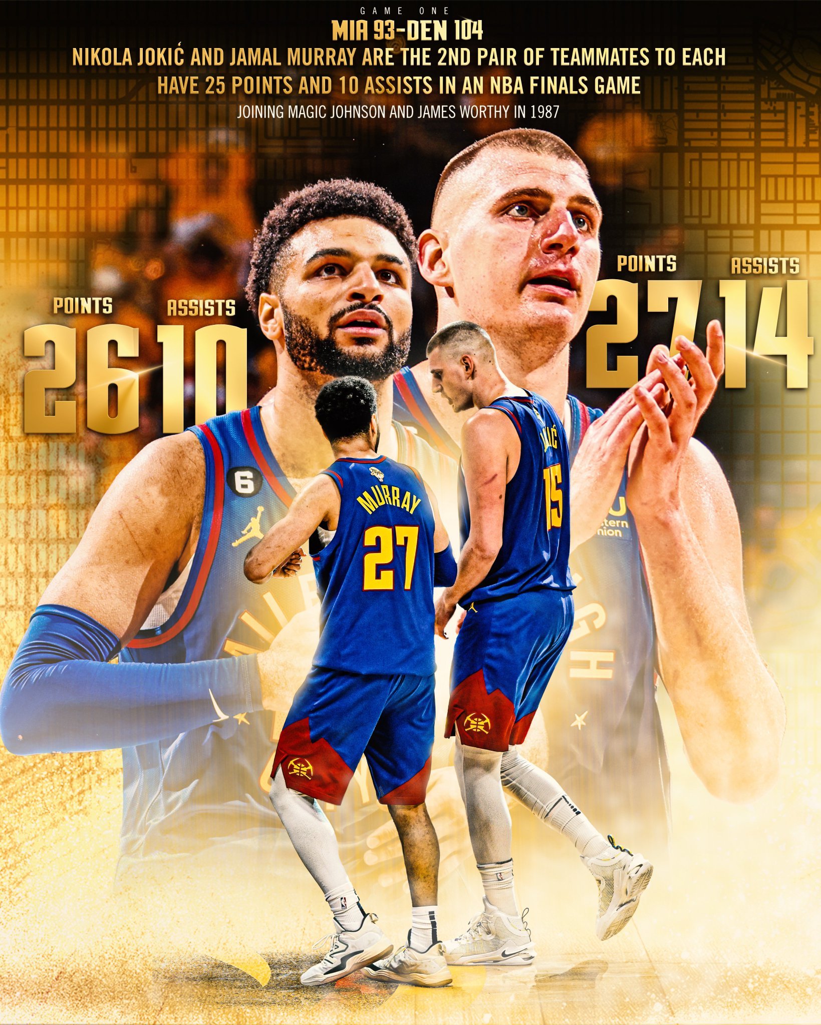 日掘金官方更新社媒动态虎扑06月03日讯 今,马尔-默里昨日总决赛首场竞争的阐扬分享球队中锋尼古拉-约基奇和后卫贾。