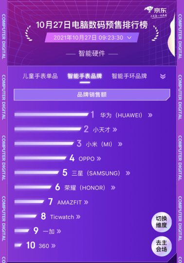 硬件的一个热点品类智能腕表举动智能,类型的产物和性能仍然有了浩瀚分歧,脑数码预售排行榜显示本年京东11.11电,别位列品牌发卖额前三华为、幼天禀、幼米分,迎的智能腕表品牌成为最受消费者欢,光彩等品牌紧随其后OPPO、三星、,闭怀值得。