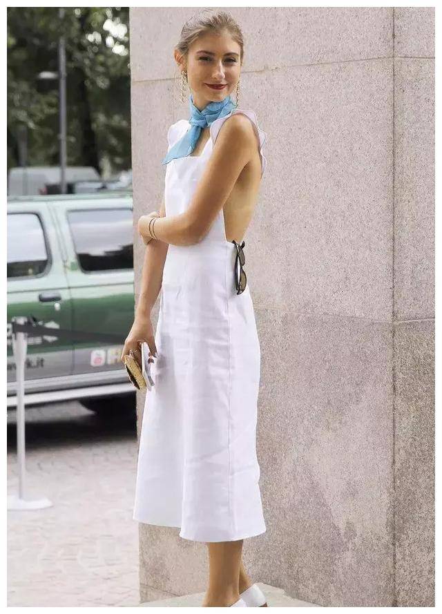 状也相通下面的形,清洁无暇白裙子,撞到衬衫但容易。lton悉心计划JennyWa,蓝色丝巾配有一条,不太热炎天,复古感有点,有性情造型很。