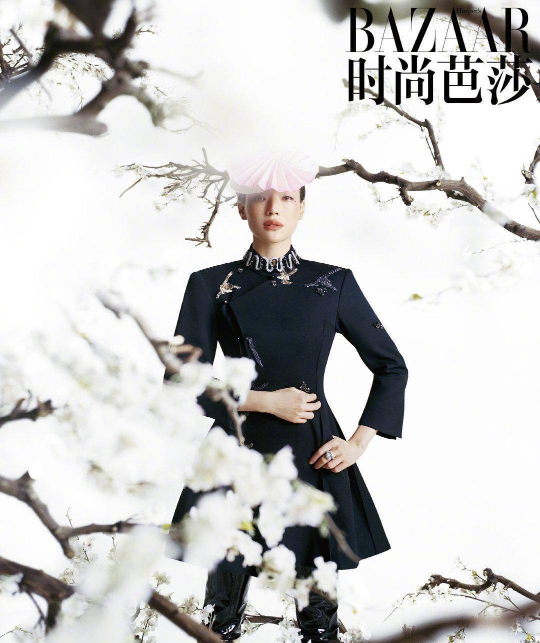 还过得去下面这张,很有计划感玄色套装,得玲珑有致肉体化妆,饰与背景也较量贴切头发的粉赤色折纸装,此罢了但也仅。九刊封面“影楼风”廉价又土气