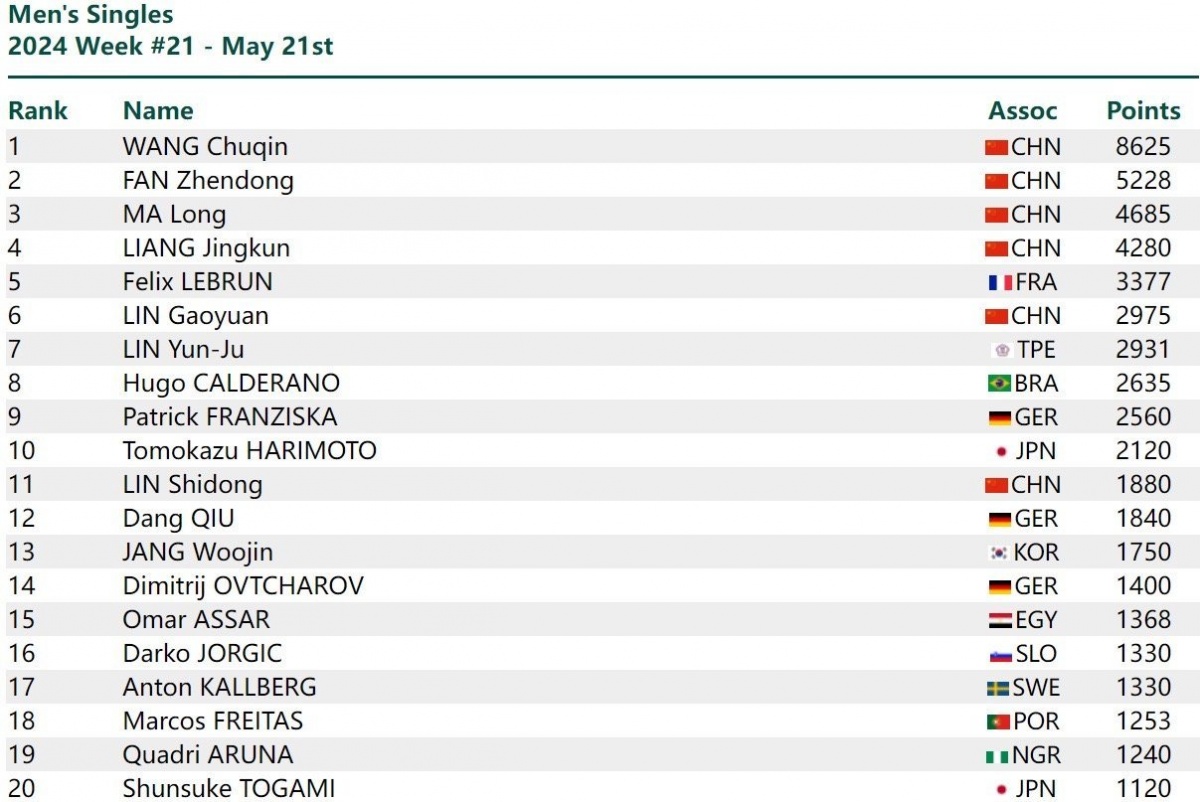 打方面男人单,东国际乒联公布最新世界、马龙、梁靖崑位列前四中国队球员王楚钦、樊振,位列第6林高远。上升14个名次位列第47穆罕默德·埃尔贝利亚排名,业生计新高改正局部职;4个名次位列第72田中佑汰排名上升4;升20个名次位列第89迈赫迪·布洛斯排名上;名上升38个名次位列第96优瑟夫·阿卜杜勒-阿齐兹排,业生计新高改正局部职xg111