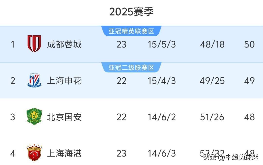 8月30日北京时候,轮进入第二个竞争日跟着中超联赛第23,战依期上演两场主题。分榜上最新积,城告终对上海海港的“赛季双杀”争冠方式产生了彰彰转折:成都蓉,分到达50分的球队成为本赛季首支积,提下一时登上榜首正在多出一场的前;区那里而保级,间的分差仅剩1分四支保级球队之,常急急景色异。