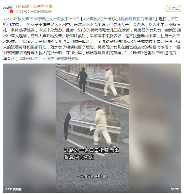 2日3月亚星会员注册道修德一道当仁不让事项:指日FM93浙江交通之声微博报,失慎失足落水修德一名女子,水中挣扎呼救因不会泅水正在,风险情景。岁吴师傅展现后正正在邻近的51,入水中施救绝不游移跳,喊来母亲协帮其女儿则神速。稳重默默一家三口,女子胜利救上岸一心合力将落水。
